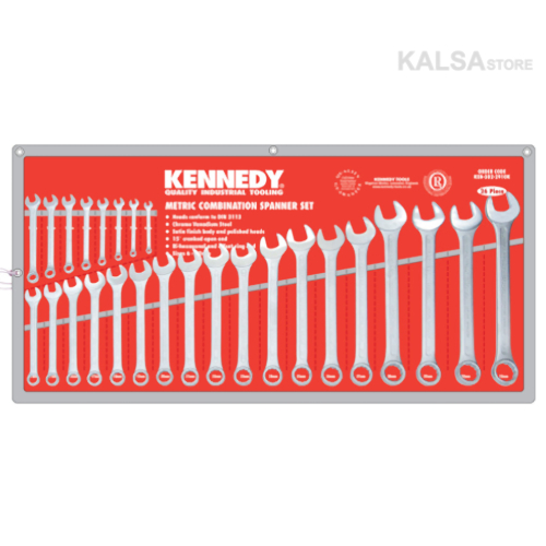 Combination Spanner Set, Metric, Size Range 6 - 32mm, Set of 26-pieces, Chrome Vanadium Steel, Kennedy